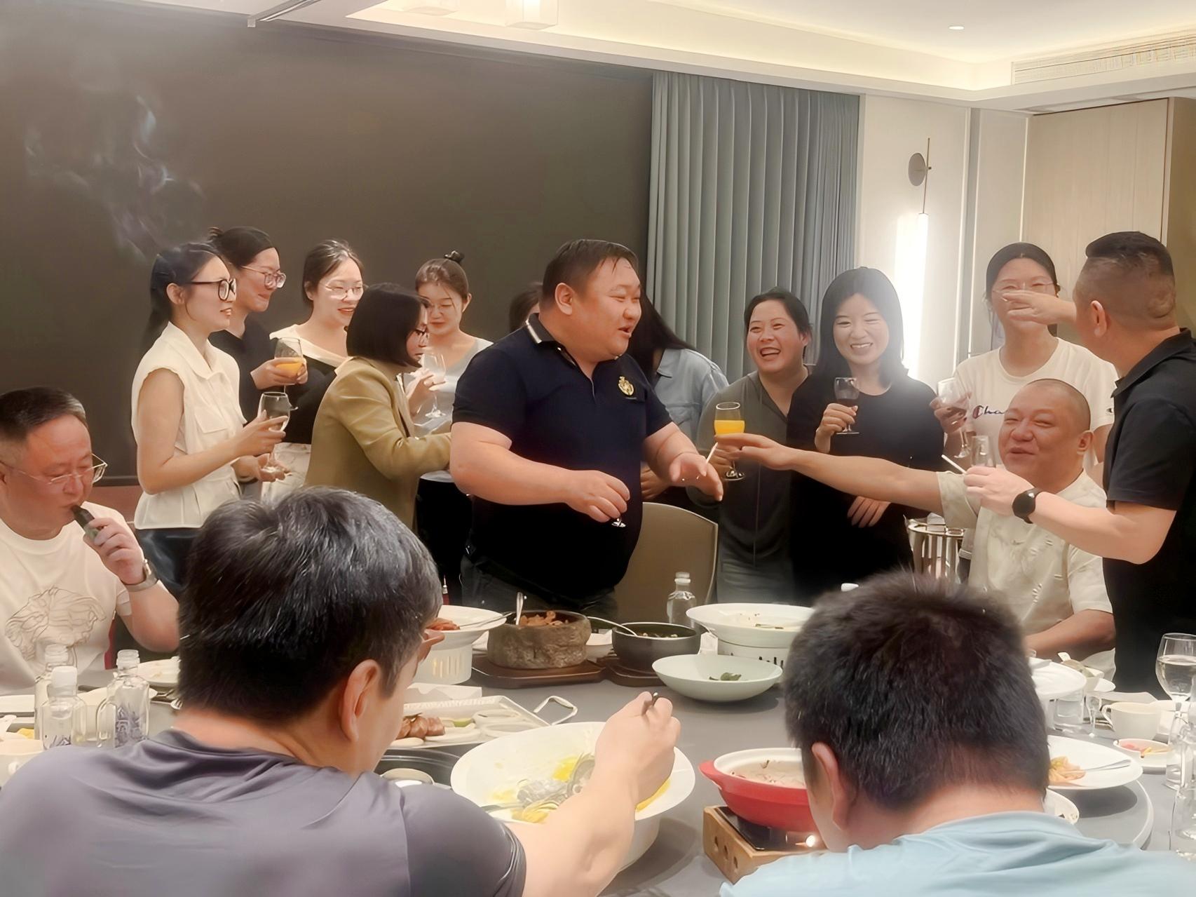 隨后,豐富多樣的美食紛紛上桌,推杯換盞間,交流聲、歡笑聲此起彼伏。各部門員工相互分享工作中的趣事和生活點(diǎn)滴,平日里因工作繁忙而疏于交流的同事們借此機(jī)會(huì)拉近了彼此距離。